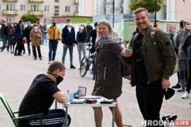 Каля 200 гродзенцаў прыйшлі ўвечары 26 траўня на Савецкую плошчу, каб паставіць подпіс за вылучэнне Святланы Ціханоўскай у кандыдаты ў прэзідэнты Беларусі. Святлана Ціханоўская…