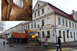 З 29 студзеня рабочыя пачалі разбіраць тратуар каля крамы “Ратушны”. Неўзабаве там з’явіцца ўваход у старадаўні склеп, дзе адкрыецца кафэ-пякарня. Зараз ўваход у падвал…