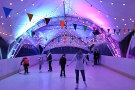 Пляцоўка са штучным лёдам на даху гандлёвага дома “Нёман” адкрылася 21 снежня. Паверхам ніжэй у “Вялікім буфеце” можна браць канькі на пракат. Уваходны квіток…