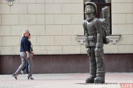 Напярэдадні Дня горада ў Гродне ўсталявалі чарговую кампазіцыю. Каля Дома прафсаюзаў 13 верасня з’явілася двухметровая фігура падарожніка. Аўтарам драўлянай амаль двухмятровай скульптуры з’яўляецца разьбяр…