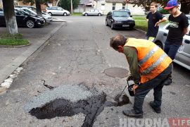 На вуліцы Бялінскага праблемы з ямамі існуюць ужо некалькі гадоў, але толькі ў канцы жніўня 2018 года гродзенскія дарожнікі даехалі ў гэты раён і…