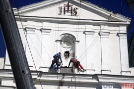 Фігуры святых з гродзенскага Фарнага касцёла знялі ў межах рамонту фасада. Іх адправяць на рэстаўрацыю. Фігуру святога Францыска Ксавэрыя з першай паловы XVIII ст.…
