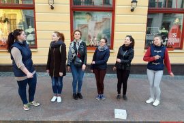 Сярод вулічных музыкаў на вуліцы Савецкай з’явілася група дзяўчат, якія спяваюць беларускія фальклорныя песні. Навучэнкі Каледжа мастацтваў выходзяць на самую ажыўленую вуліцу горада, каб…