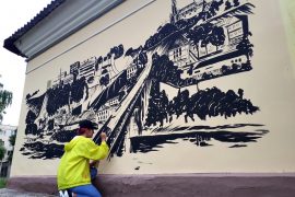 Вялікі малюнак з відам Гродна намалявалі ў першы дзень жніўня на сцяне аднапавярховага будынка, дзе знаходзіцца кафэ “Ніндзя-кебаб”. Уладальнік кафэ вырашыў такім чынам упрыгожыць…