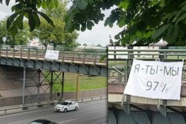 У Гродне 22 чэрвеня на мосце на вул. Гарнавых, аўтобусных прыпынках, дарогах з’явіліся надпісы” 3% “і”97%”. Так гродзенцы пратэстуюць супраць затрыманняў прэтэндэнтаў у кандыдаты…