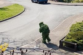 Брытанец у касцюме куста блукае па горадзе падчас каранціну і нават паспявае зрабіць пакупкі. Але, падобна, паліцыя да гэтага часу яго не заўважыла, бо…
