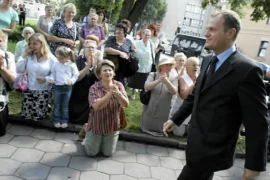 Калі лідара польскай апазіцыі Дональда Туска ў снежні 2023 выбралі прэм’ер-міністрам Польшчы, ізноў выплыла фота з жанчынамі, што стаяць перад ім на каленях. Здымак…