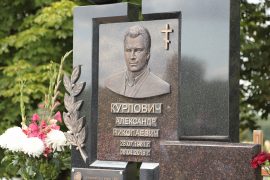 Ля ўзножжа помніка Аляксандру Курловічу (1961-2018) – штанга, нязменны атрыбут знакамітага ва ўсім свеце супертяж, зверху – алімпійскія кольцы, лаўровыя галіны і алімпійскі полымя…