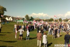 Сустрэча выбарцаў з даверанай асобай кандыдата ў прэзідэнты Святланы Ціханоўскай прайшла ў Навагрудку 1 жніўня. Фота ў рэдакцыю даслаў чытач Hrodna.life Дзмітрый Солтан. Мітынг…