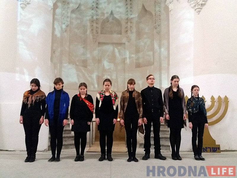 Пасля афіцыйных выступленняў у сінагозе запалiлi свечы памяцi і прайшла музычна-тэатралізаваная пастаноўка «Дзеці вайны».
