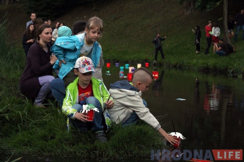 Сотни жителей Гродно вечером 24 июня посетили первый Фестиваль водных фонариков в парке Жилибера. В течение двух часов под звуки романтических мелодий горожане опускали в Городничанку бумажные фонарики со свечами и загадывали желания.