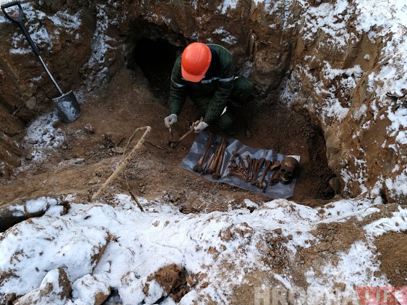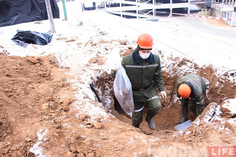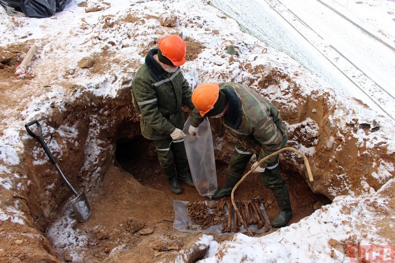 Уже сегодня по найденным на стройплощадке ТРК «Тринити» вещам можно предположить, что там находится групповое захоронение советских солдат времён Второй мировой войны. С 14 февраля на площадке работают поисковики 52-го отдельного специализированного поискового батальона, которые обнаружили в земле новые находки.