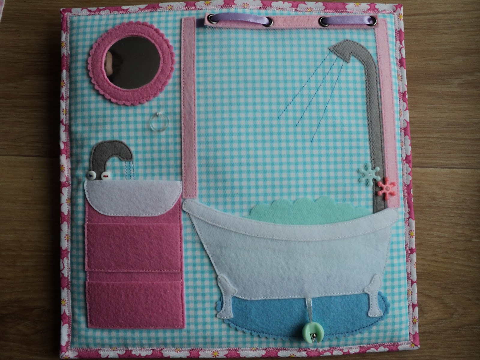 Елена Шейтер на выставке-ярмарке ремеслеников «КУФАР» 17-18.02.2018 г.Следующим предметом был развивающий коврик. «С помощью его, — говорит Елена, — ребенок учится застегивать пуговки, пользоваться молнией, прикреплять фигурки – развивать мелкую моторику рук».