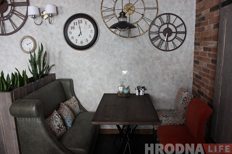 «Гарадзенская кавярня» это уютное пространство в исторической части города, где можно выпить горячие и алкогольные напитки. Есть в меню и свежая выпечка. Интерьер заведения выполнен в расслабляющем стиле. Владельцы постарались создать его таким, чтобы гости забывали о времени. Именно поэтому в интерьере используется много остановленных часов.