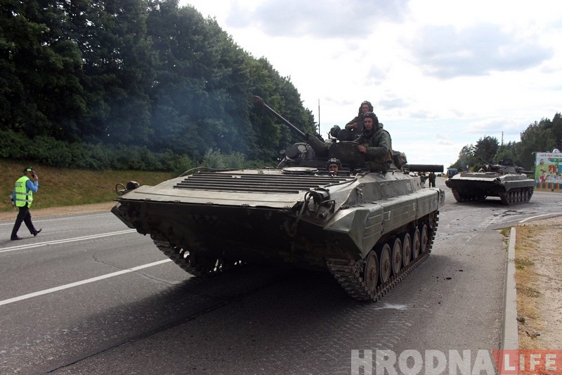 На выезде из Гродно в сторону Сапоцкино около 16:20 произошло столкновение боевой машины пехоты и автомобиля Volkswagen. По счастливой случайности обошлось без жертв.