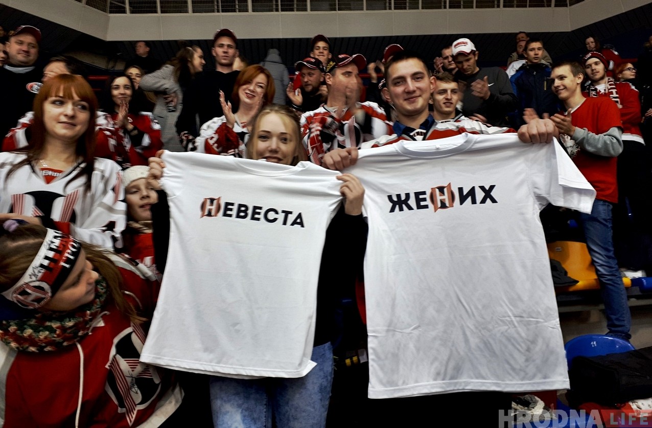 Пара встречается уже три года. Познакомились молодые гродненцы на хоккее в Гродно. Именно поэтому Александр и решил сделать важнейший шаг в своей жизни во время игры любимой команды. Болельщики на фан-секторе знали о сюрпризе и поздравили пару специальными майками «жених» и «невеста».