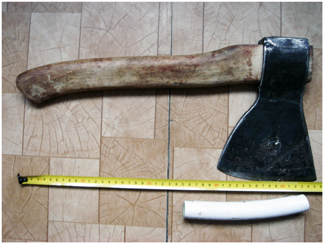 Тогда одинокий супруг начал угрожать топориком для разделки мяса, который он зачем-то прихватил с собой. Какой-либо ущерб здоровью наносить не собирался, а думал просто попугать. Своей цели гражданин достиг, и на место прибыли сотрудники милиции, в отношении человека, размахивающего топором, возбуждено уголовное дело по статье «Хулиганство».