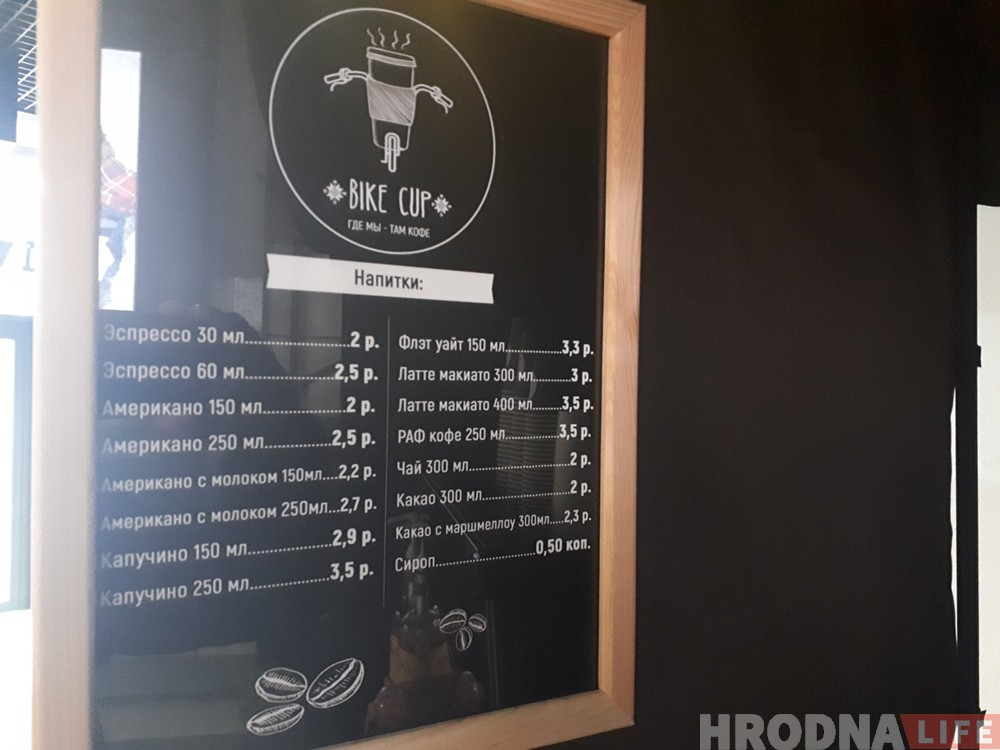Велокофейню «вike cup» запустили гродненцы Егор и Алексей. С 1 февраля она работает в торговом доме «Неман». С потеплением ребята планируют выезжать на улицы города и на различные фестивали.