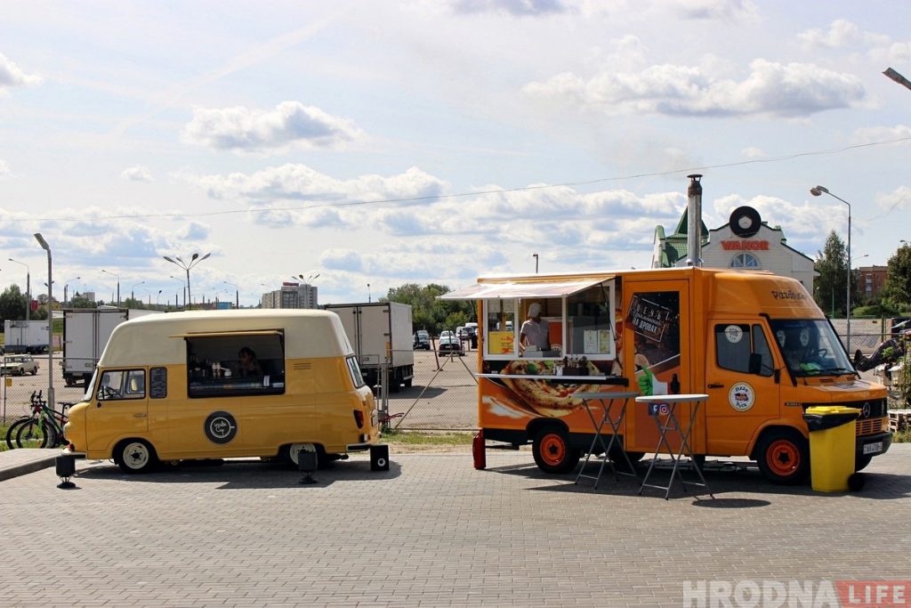 В Гродно насчитывается 7 фуд-траков. Их меню — напитки, хот-доги, бургеры и шаурма. «Пиццатрак» на улице Кирова предлагает пиццу, приготовленную на дровах.