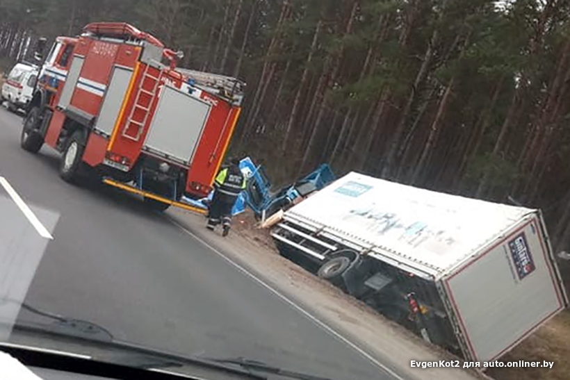— Как ехать в направлении Минска, после Ивья, где заканчивается ремонт дороги и начинается двухполоска в обе стороны, — пояснил EvgenKot2. — Вот метров через 500 этот грузовик съехал прямо в знак. Других машин не было, на земле перед автомобилем МЧС лежало накрытое тело.