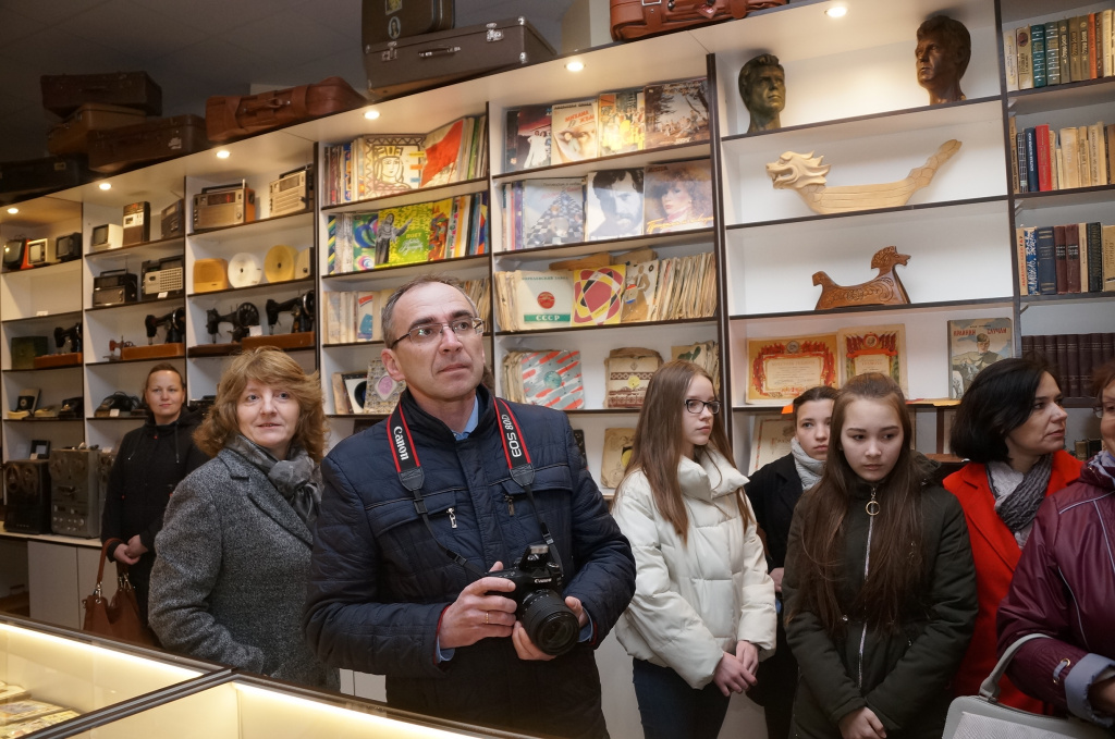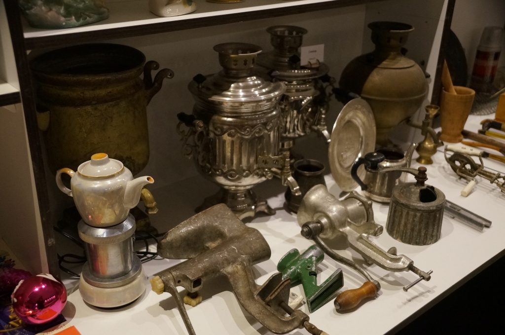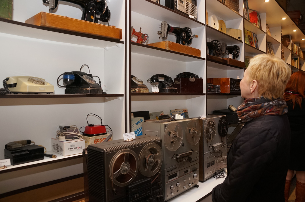 — «Фишка» нашего музея в том, что здесь все можно трогать руками, — рассказывает Вячеслав. – Прикоснуться к старой швейной машинке, фотоаппарату, игрушке, послушать старые пластинки на проигрывателе, принарядиться из музейного гардероба и сделать селфи в стиле ностальжи. И даже посмотреть доброе советское кино, — музей интерактивный, живой.