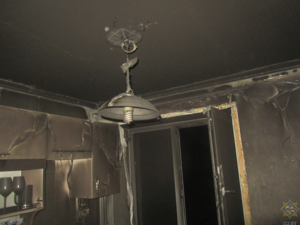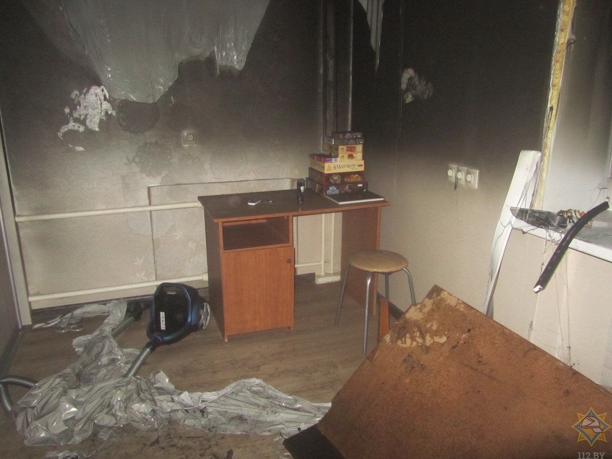 Вспышка повредила входную дверь в квартиру, остекление оконного проема в комнате, задымил стены и потолок.