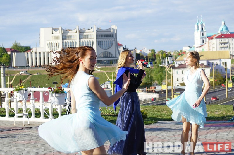 Вместе с профессиональными артистами у ротонды выступили и воспитанники детских курсов филармонии. В концерте прозвучали популярные песни военных и послевоенных времен, классическая музыка и произведения гродненских композиторов. Дети выступали со стихами и хореографическими номерами.