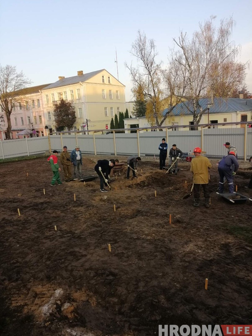 Когда-то на месте сквера на Замковой располагался Дом рыбака – каменное одноэтажное здание 16 века, где, по некоторым версиям, жил руководитель гродненского цеха рыбаков. В 1960-х все здания в этом районе снесли из-за строительства Дома быта. Известно, что в центре Гродно будет построена не точная копия снесенных построек, но внешне здания будут очень похожи на те, которые там стояли 100 лет назад.