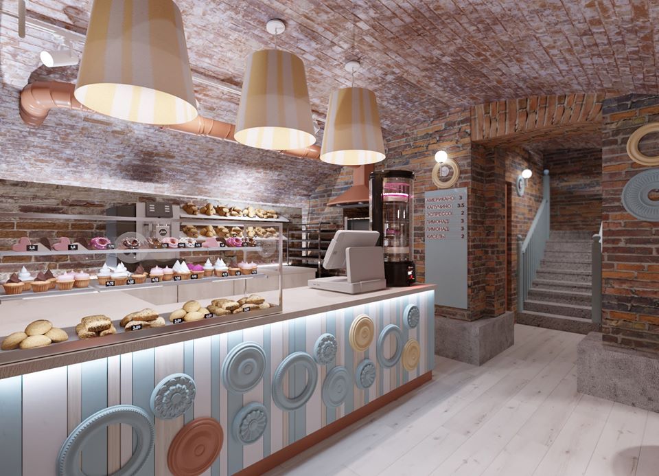 Мы сделали проект кафе-пекарни, где можно будет купить вкусную выпечку, посидеть и выпить чашку горячего чая или кофе. Основной запрос от хозяев кафе-пекарни был такой: чтобы стало «вкусно», светло, хотелось находиться, оставаться, кушать и возвращаться