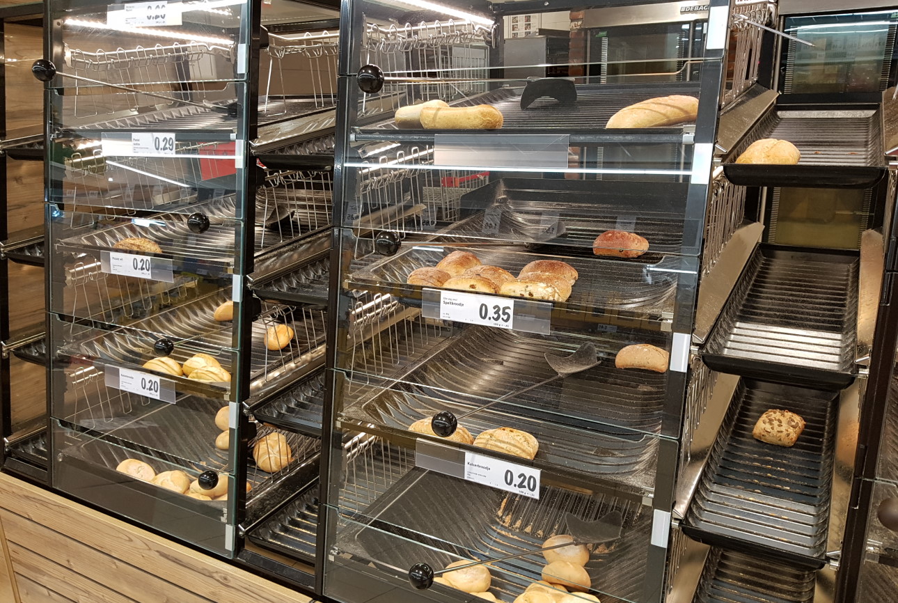 Автор обращения видел в Европе другие способы хранения: хлеб и булочки лежат за прозрачной пластиковой перегородкой и лишний контакт исключён. Он очень надеется, что к такой практике придёт и Беларусь. Пока он заметил такую закрытую выкладку только в магазинах «Евроопт». В редакцию Hrodna.life он отправил примеры закрытой выкладки из Западной Европы — фото он нашёл в интернете.