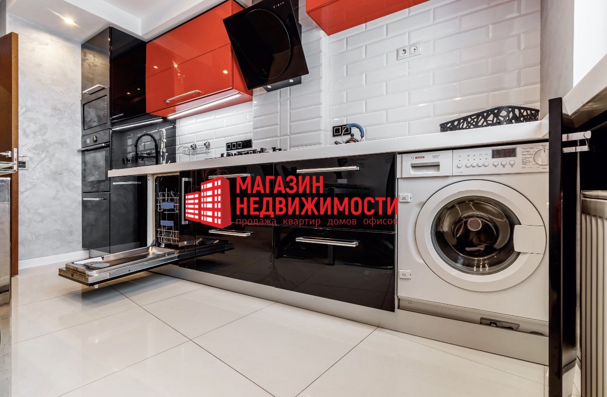 В квартире — высокотехнологичный ремонт, удачная планировка и теплые полы. На кухне система дополнительной очистки воды с отдельным краном и сменными фильтрами. Встроенная бытовая техника — ведущих производителей (например, духовой шкаф — от Gorenje). Есть мощная вытяжка, посудомоечная машина и холодильник. В ванной комнате сантехника ведущих производителей.
