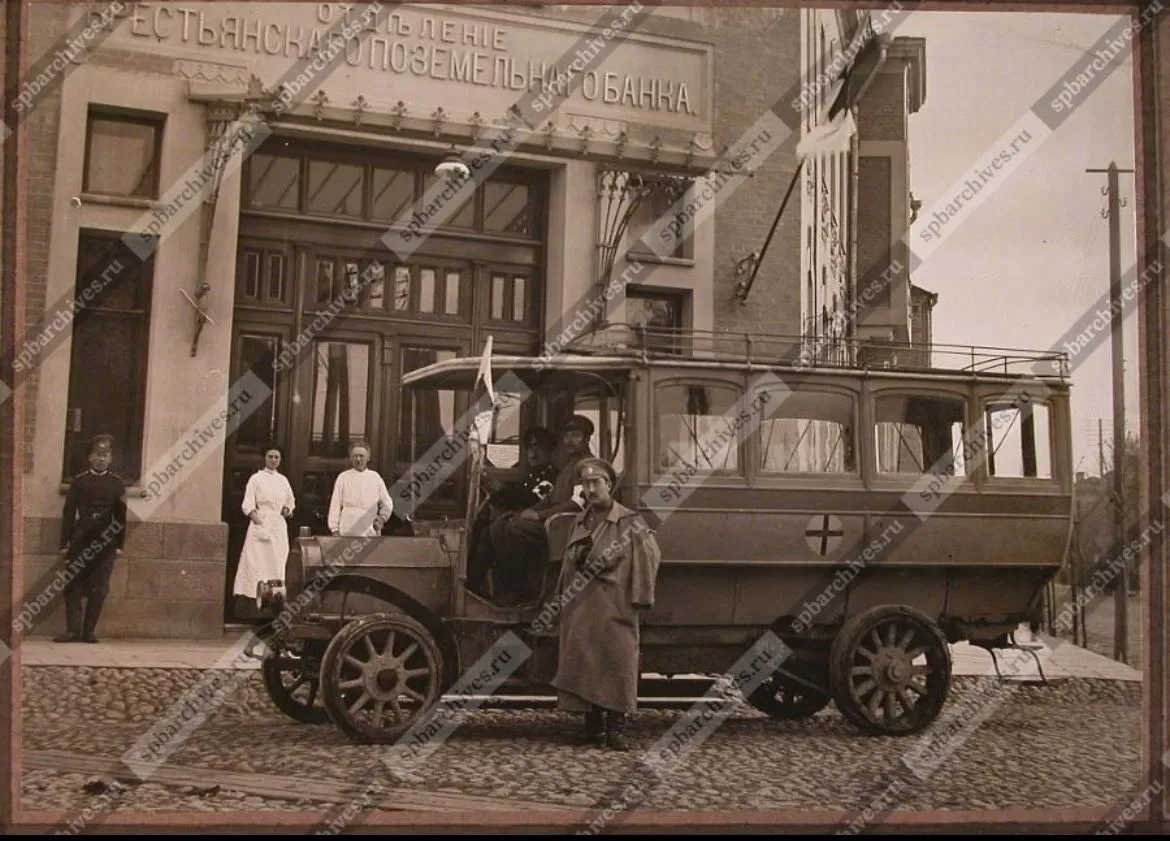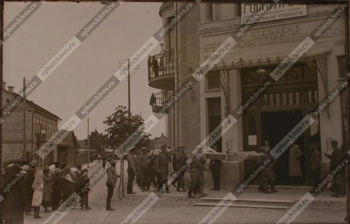 Бывший банк, где во времена войны был госпиталь, это здание на сегодняшней улице Ленина, 9. Сейчас там находится штаб армии. Фотограф Гельгор был представителем династии гродненских фотографов, которая работала в городе несколько десятилетий с 1896 года до конца 1930-х.