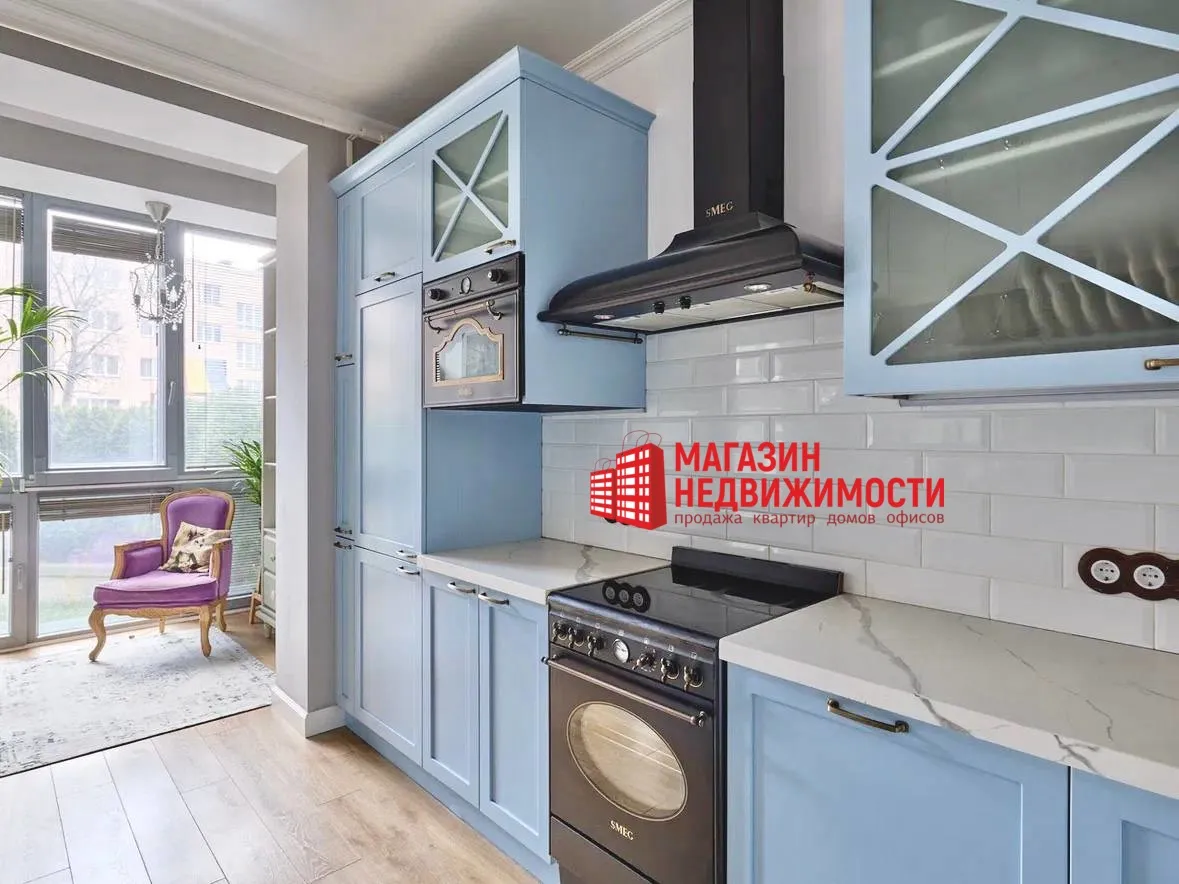 В центре Гродно, недалеко от вокзала, продается трёхкомнатная квартира с собственной террасой и небольшим участком зелёной зоны. В доме есть подземный паркинг, на крыше — общая терраса, а интерьер квартиры будто сошел с обложки дизайнерского журнала.