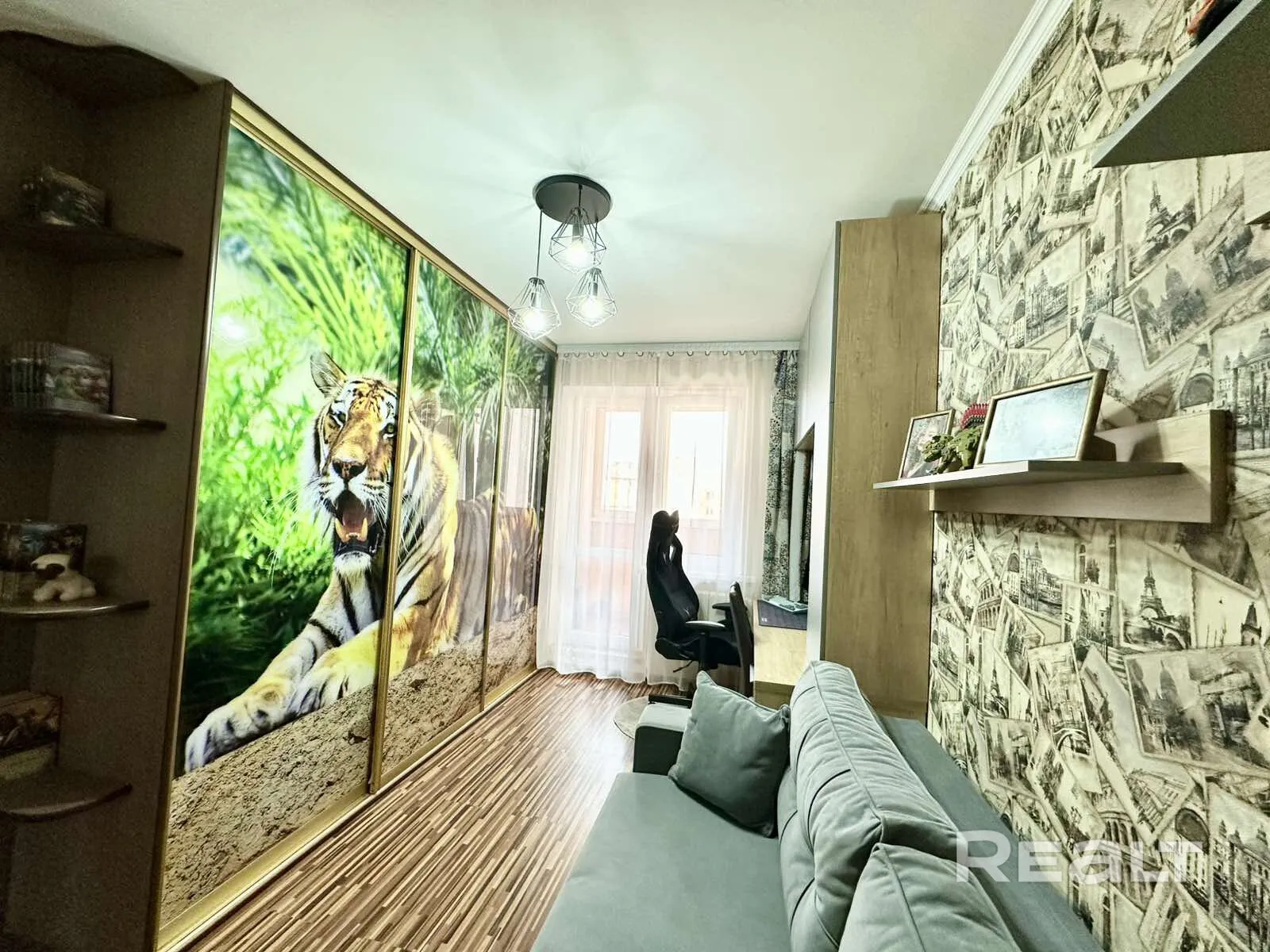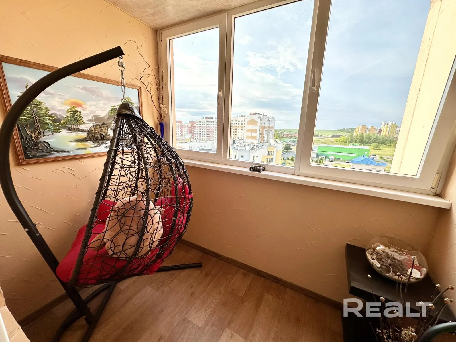 В Гродно на Тавлая, 63 на продажу выставлена трёхкомнатная квартира с панорамой Девятовки и хищниками в интерьере.