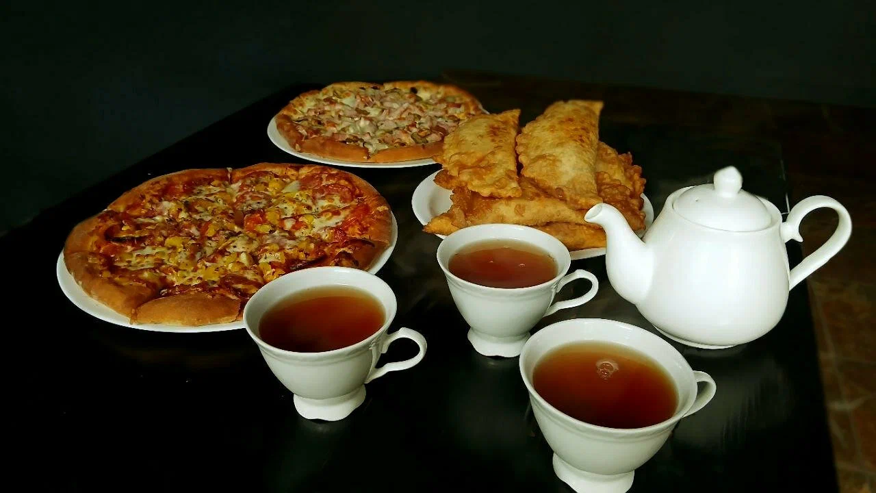 В меню есть бутылочные напитки и коктейли. Из еды чебуреки — говядина, свинина, курица, пицца и бульон. Чебурек стоит 4,5 рублей, пицца — 28-33 рубля, бульон — 3-3,5 рублей. “Дороговато, кстати”, — отмечают блогеры.