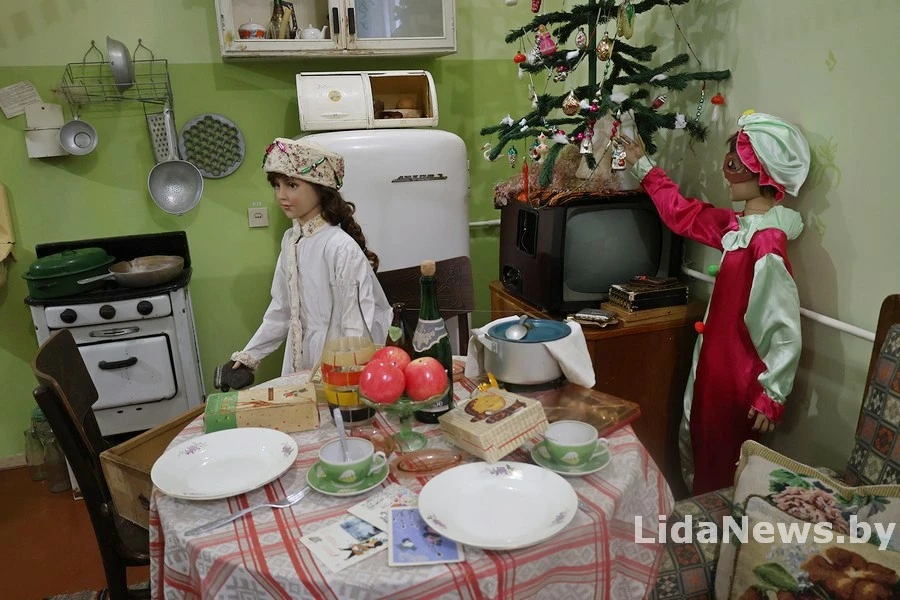 Быт лидчан в советские годы визуализировали с помощью предметов той эпохи — техники, одежды и предметов интерьера. Также добавили манекенов — это семья из пяти человек, которая готовится к Новому году. О новой экспозиции пишет «Лидская газета».