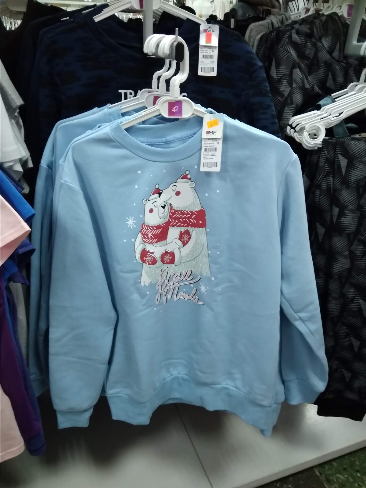 Рождественский ассортимент этой компании порадовал: байки мужские и женские, носочки и пижамки с рождественскими пожеланиями и рисунками. Есть из чего выбрать. Кстати, много праздничных носков есть и у гродненской фирмы Conte.