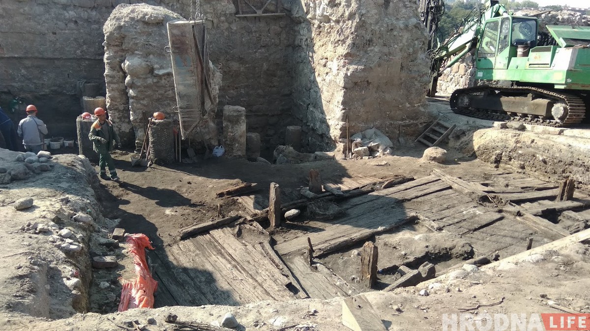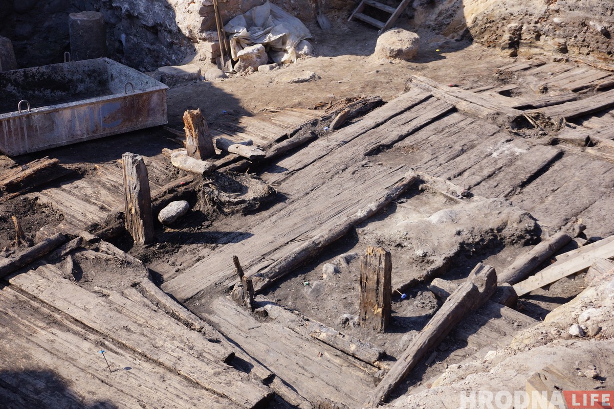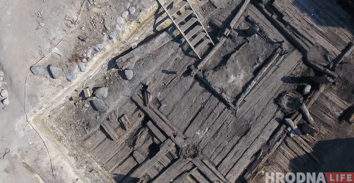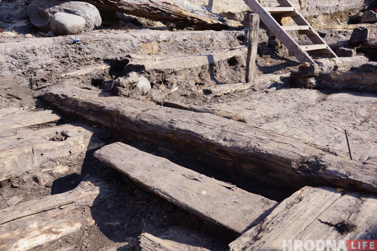 Раскопанную постройку археологи датируют серединой-концом 14 века. Сруб дома, деревянный пол и фундамент печи хорошо сохранились. Дом оказался богатым на находки: в нем нашли украшения, предметы быта и фрагменты металлических слитков — тогдашние деньги. Hrodna.life посетил раскопки 19 сентября.