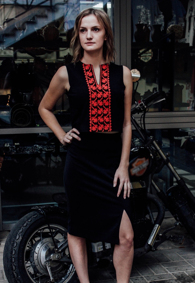 — К нам пришла девушка — искала юбку. У нас висела одна на тот момент — обычная, со стандартного белорусского строя. Она ее примерила: юбка смотрелась на ней не очень привлекательно. Я подумала: девочки же хотят носить белорусское, но оно выглядит некрасиво. А можно соединить 21-й век с белорусскостью. Так появилась идея, — рассказывает Яна Литвинчук, инициатор проекта.