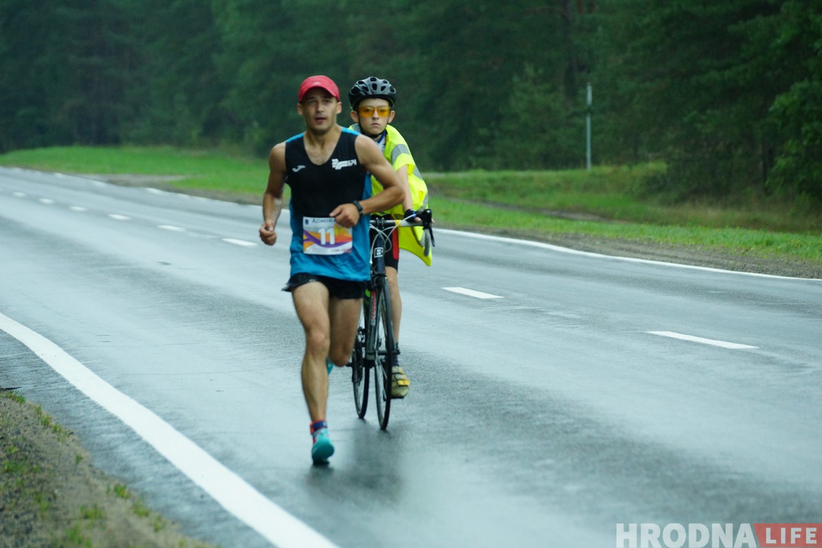 Игорь пробежал уже около десятка марафонов, но победителем на гродненской трассе стал впервые. Говорит, что помогли стать первым погода, спортивный опыт и поддержка близких. Больше всех за Игоря болела дочь Меланья.