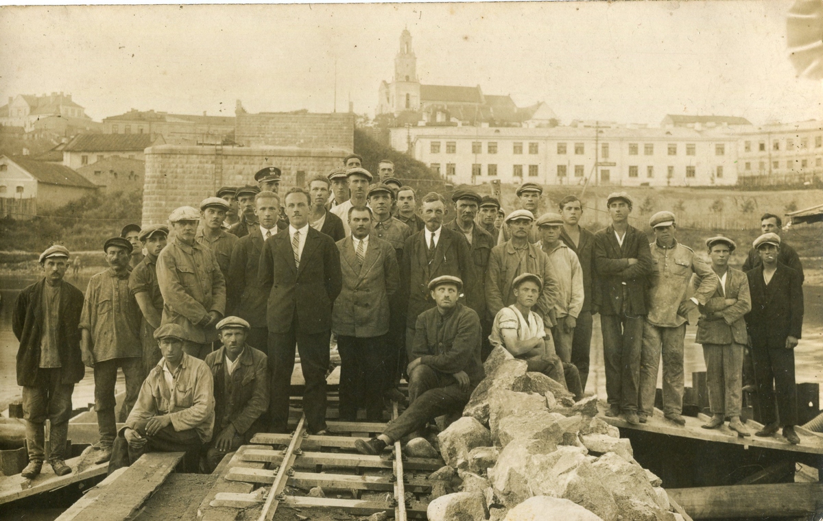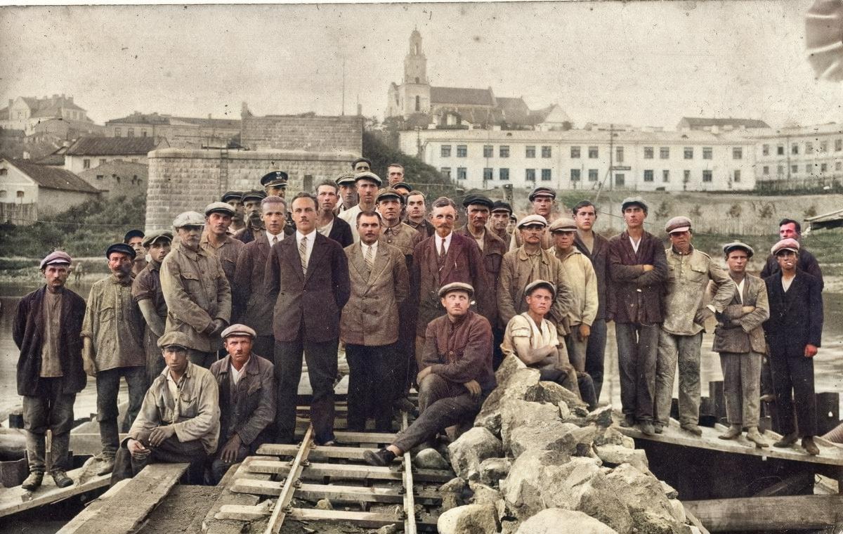 Рабочие во время строительства моста через Неман, 1930-е гг. Из архива семьи Закшевских