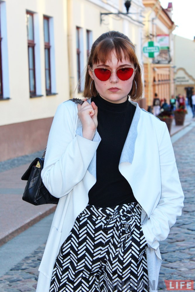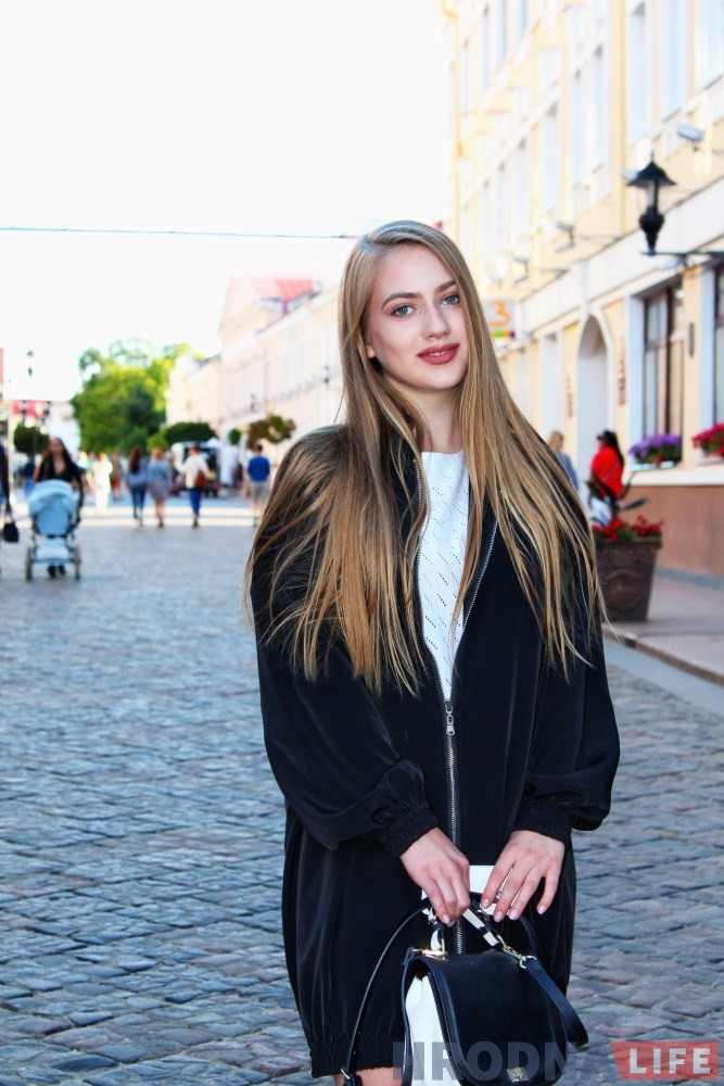 Вообще я из Минска, в Гродно приехала в гости к друзьям. Я хожу в художественную школу, учусь. Занимаюсь спортом – хожу в зал или бегаю с тренером, раньше занималась спортивно-бальными танцами. Учусь я на дизайнера одежды в художественной школе.
