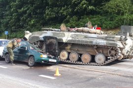 На выезде из Гродно в сторону Сапоцкино около 16:20 произошло столкновение боевой машины пехоты и автомобиля Volkswagen. По счастливой случайности обошлось без жертв. В результате столкновения БМП наехала на легковой автомобиль,…