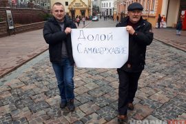 Оппозиционные активисты Михаил Соляник и Александр Лаврентьев в День Октябрьской революции вышли в центр Гродно с плакатом «Долой самодержавие». Они выбрали его, потому что…