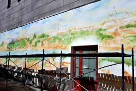 Две недели понадобилось гродненским художникам Александру и Дмитрию, чтобы восстановить 40-метровую панораму Гродно у подножия Нового замка. Изображение получился практически таким же, как было…