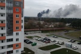 На улице 1 Мая горит крыша жилого здания напротив Евроопта. Работают четыре экипажа пожарных, стоит скорая помощь. — Пожарных много. Дым, огня нету, -…
