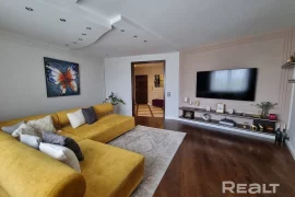 Четырехкомнатная квартира с дизайнерским ремонтом по ул. Советских Пограничников, 122 продается в Гродно. Вид из квартиры — на лесопарк Лососно. Мебель сделали на заказ. Текстиль…