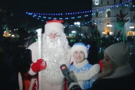 7 декабря в Гродно зажгли новогоднюю иллюминацию — включили главную ёлку города на Советской площади. Здесь собрались несколько десятков гродненцев. На сцену вышли Дед…