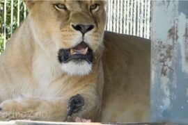 «Суровый гродненский скворец» — подписали видео создатели. Птица, не боясь, ворует у льва кусочки обеда. А он, кажется, и не против.
