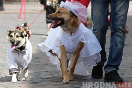 Необычная свадьба прошла в Гродно во вторник 15 мая. Собаки в свадебных нарядах со своими хозяевами прошлись от ЗАГСа на улице Ожешко до площади…